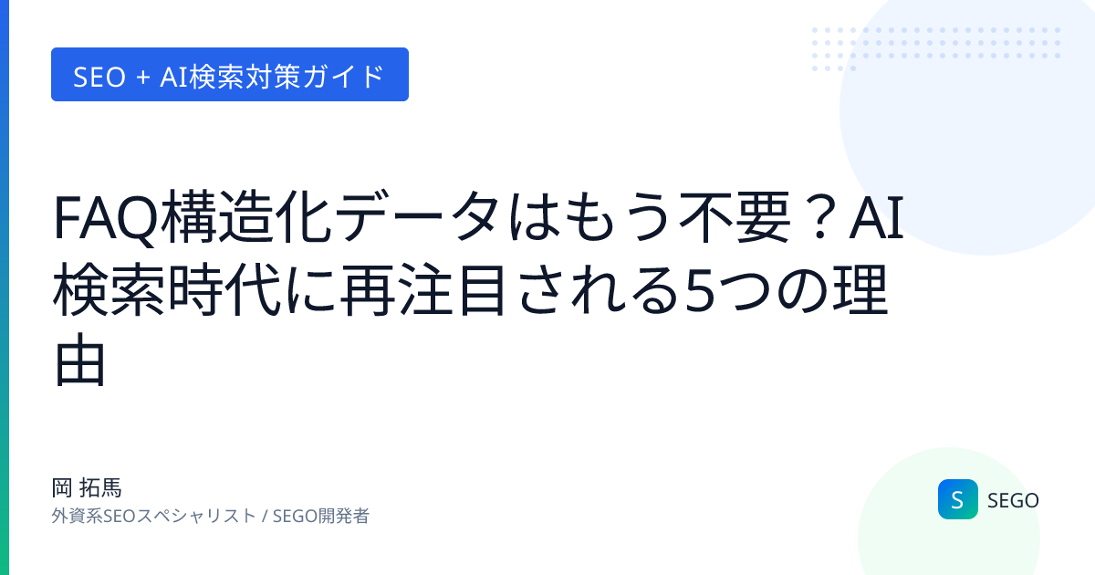 FAQ構造化データは、リッチリザルト制限後もAI検索時代に再注目される重要施策です。本記事のポイントを整理します。