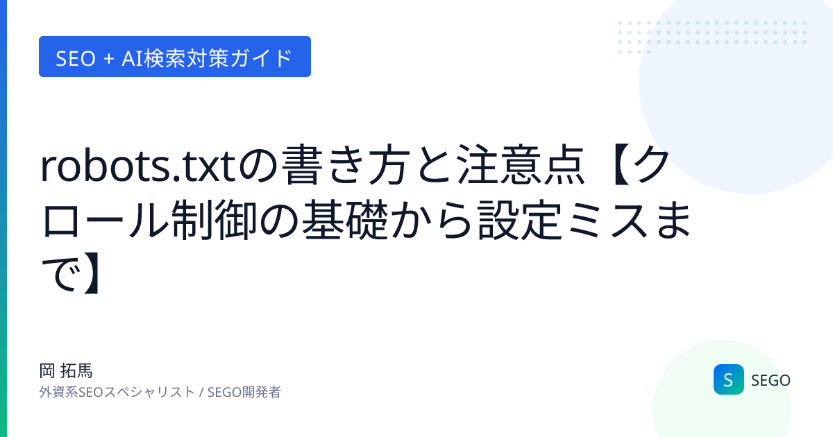 本記事では、robots.txtの基本構文から、主要クローラー別の制御方法、検索順位を落とす設定ミスとその対策までを解説します。